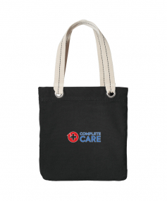 The Allie Tote is perfect for shopping, commuting or sightseeing. Contrast lining, striped handles and large metal grommets add a touch of whimsy to this casual tote. 11 Oz., cotton canvas. Interior zippered pocket. 13.25" W x 15.75" H x 3.5" D.